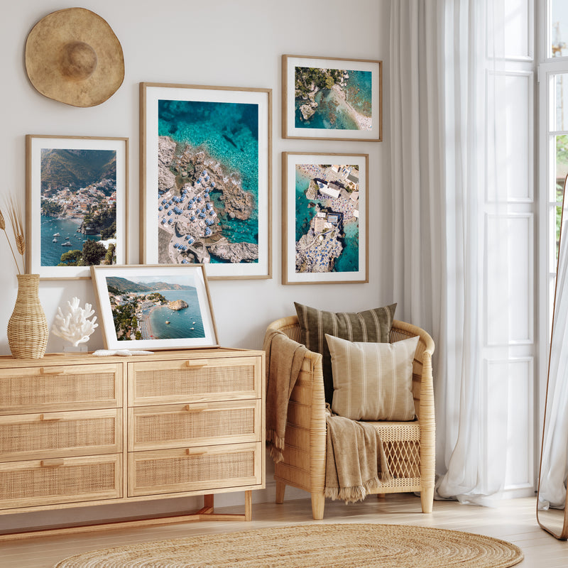 | Living Room | Dramatic beach sunsets, harbour views | 70-100cm wide statement pieces | Natural light direction, seating arrangement |