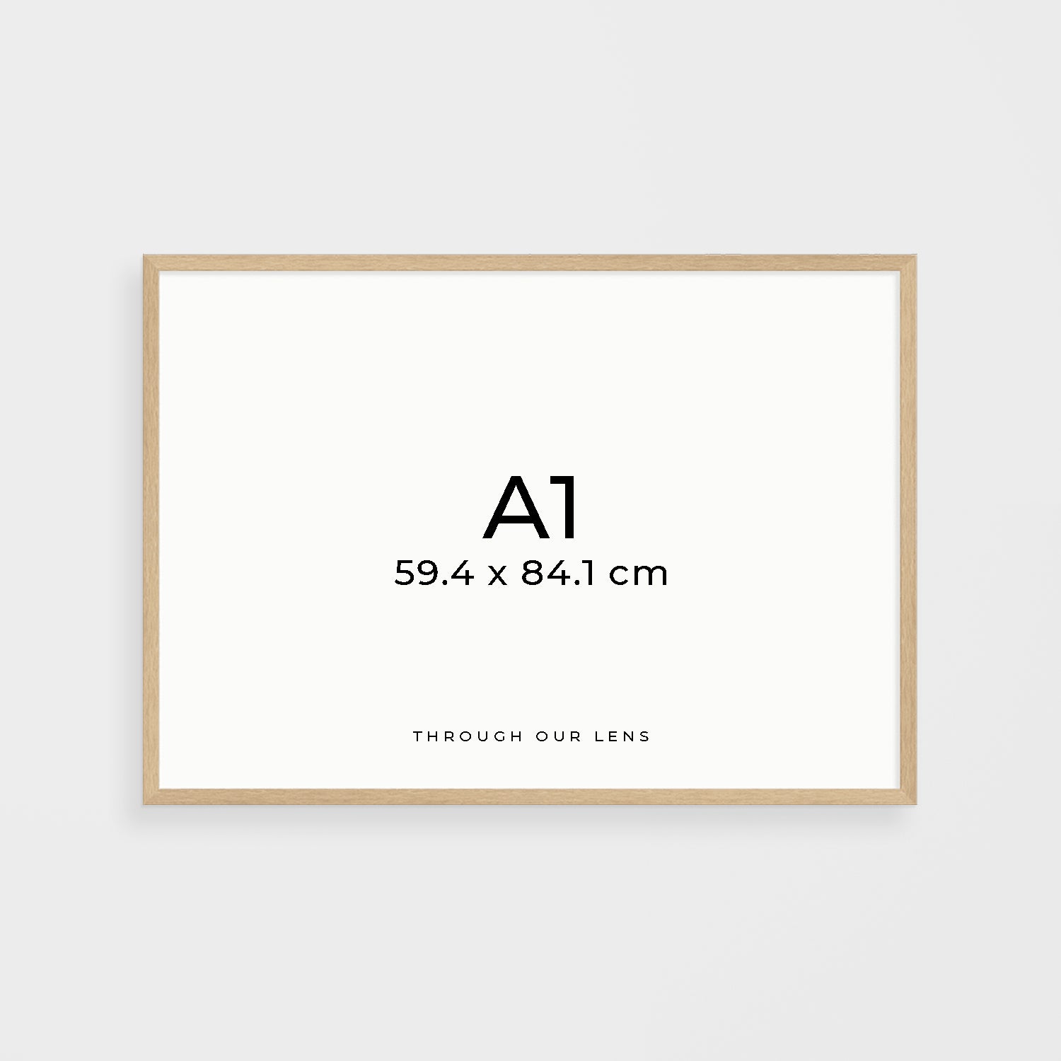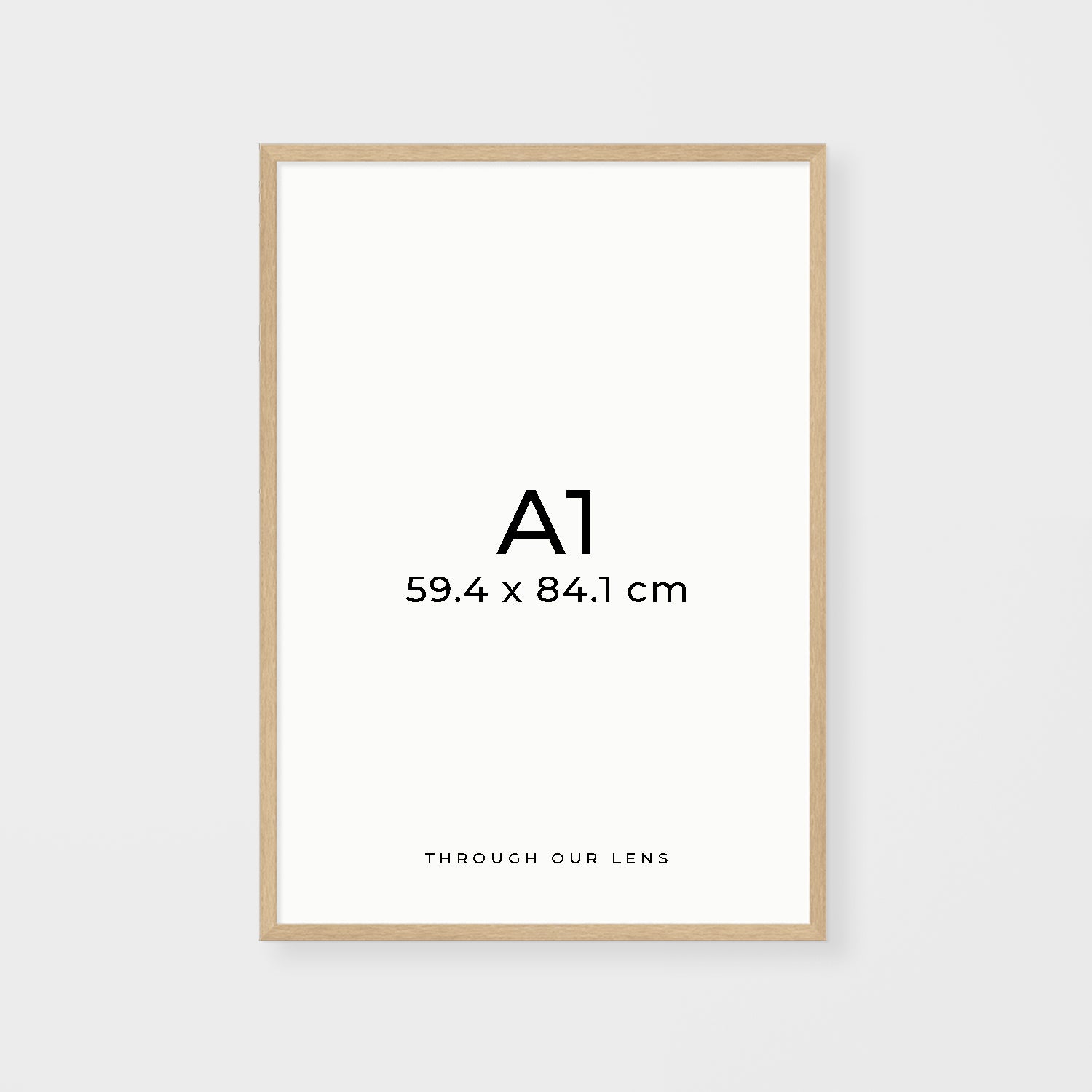 Our frames are made from premium, solid and sustainably sourced plantation timber to ensure structural integrity at larger dimensions. Our framed prints feature a unique vacuum-mounted design, where each print is firmly adhered to a backboard. This technique ensures the longevity of our products by preventing potential curling due to temperature fluctuations, extreme heat, or everyday moisture exposure in your home. In addition, each framed artwork includes protective tape around the back edges to further enhance its stability.