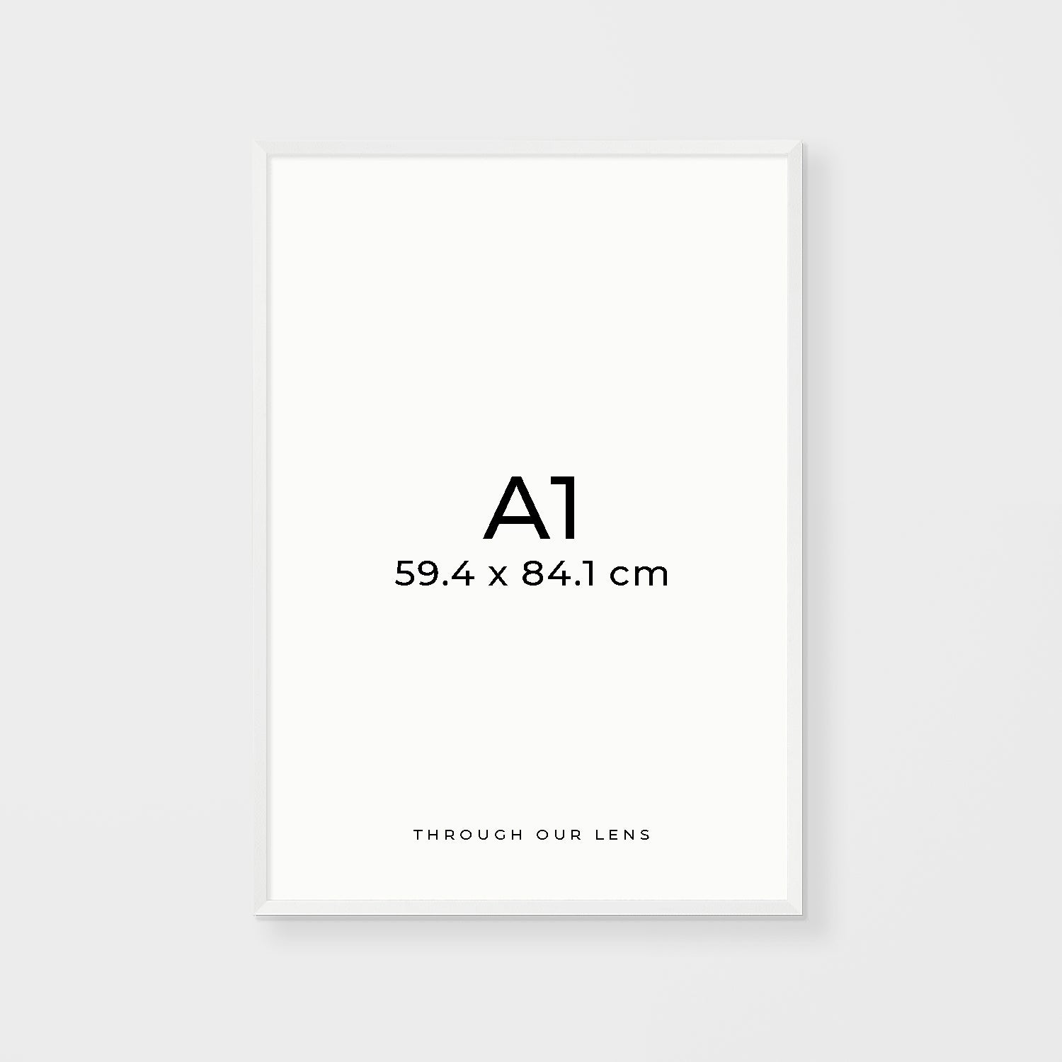 The dimensions shown on our website are measurements of the physical print with the white border. Once framed, an additional 1.5cm is added to each side of the print.