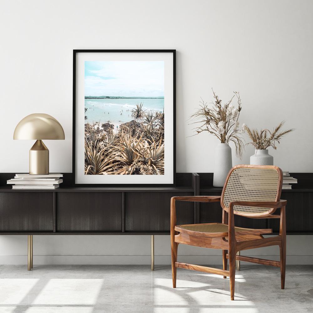 Our frames are made from premium, solid and sustainably sourced plantation timber to ensure structural integrity at larger dimensions. Our framed prints feature a unique vacuum-mounted design, where each print is firmly adhered to a backboard. This technique ensures the longevity of our products by preventing potential curling due to temperature fluctuations, extreme heat, or everyday moisture exposure in your home. In addition, each framed artwork includes protective tape around the back edges to further enhance its stability.