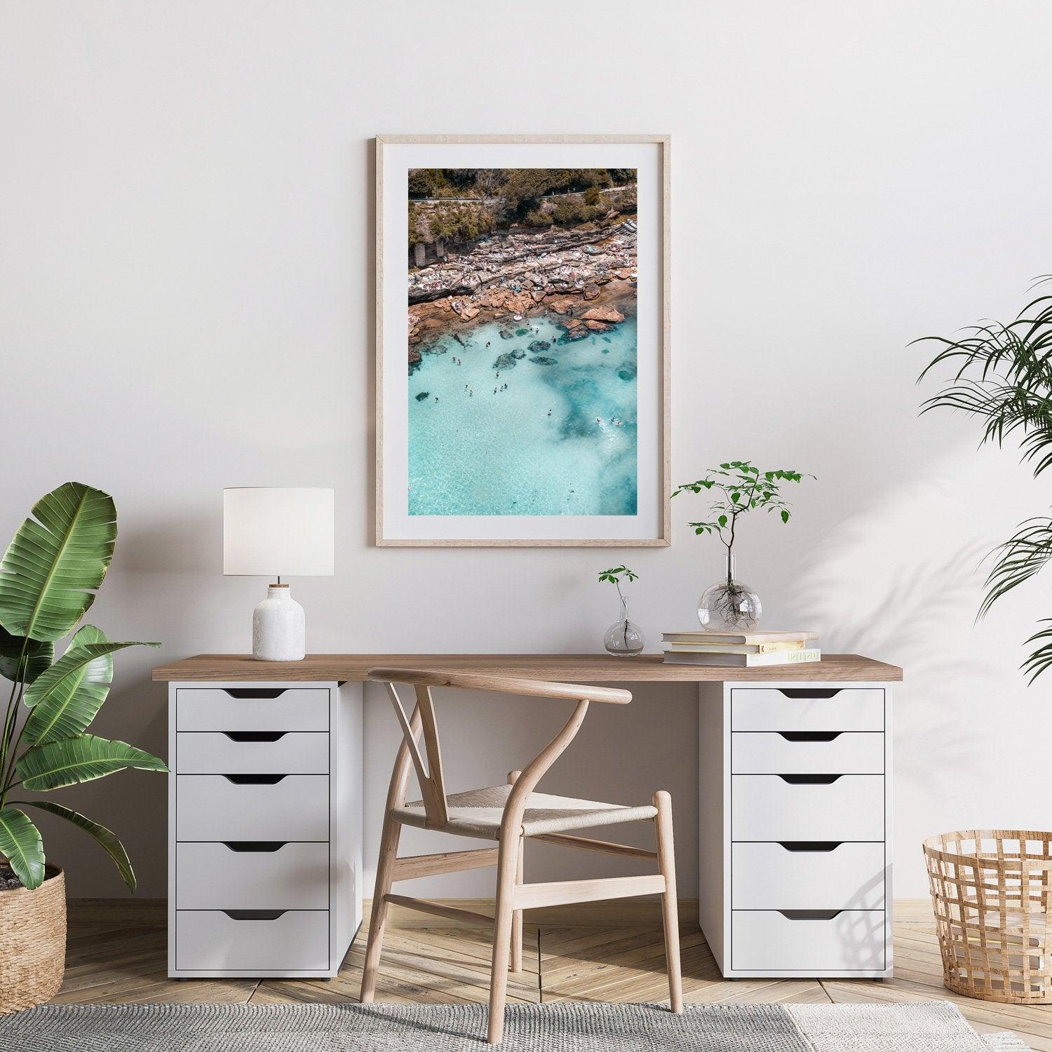 Our frames are made from premium, solid and sustainably sourced plantation timber to ensure structural integrity at larger dimensions. Our framed prints feature a unique vacuum-mounted design, where each print is firmly adhered to a backboard. This technique ensures the longevity of our products by preventing potential curling due to temperature fluctuations, extreme heat, or everyday moisture exposure in your home. In addition, each framed artwork includes protective tape around the back edges to further enhance its stability.