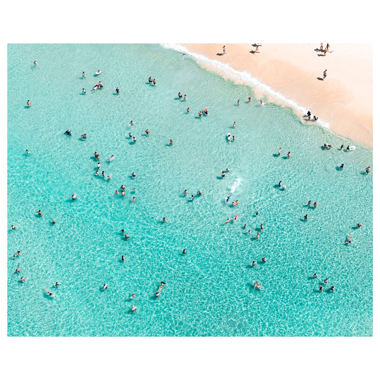 Human Confetti is a tranquil coastal wall art print capturing people gently scattered across the crystal-clear blue waters of Bondi Beach, Sydney. This serene aerial photograph blends soft ocean tones with the subtle movement of swimmers, creating a calming yet vibrant piece of wall art that brings the beauty of Australia’s iconic coastline into your home, perfect for modern, coastal, and minimalist interiors.