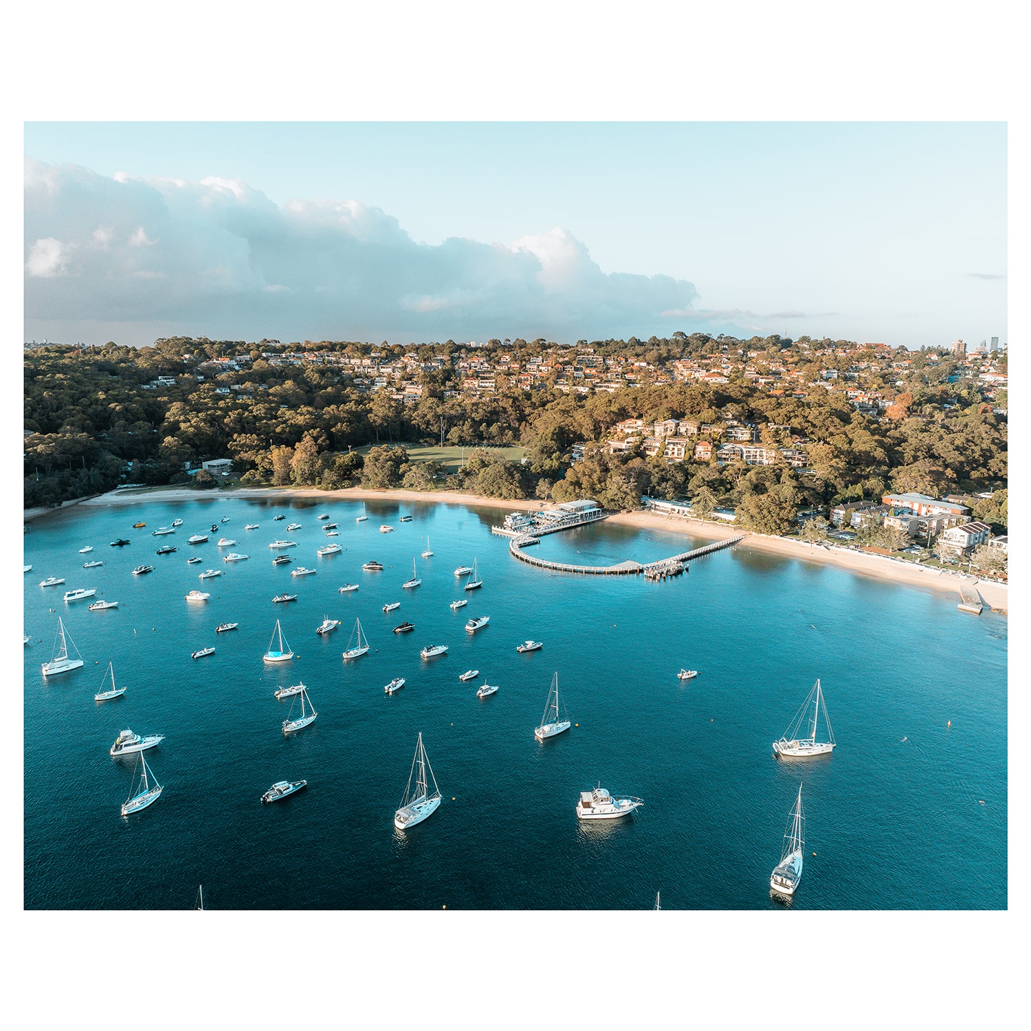 This serene dawn photograph shows Balmoral Beach's famous baths area, where the still waters create perfect mirror reflections of the surrounding bushland. The historic rotunda sits quietly in the background, waiting for another day of picnics and celebrations in this North Shore treasure.