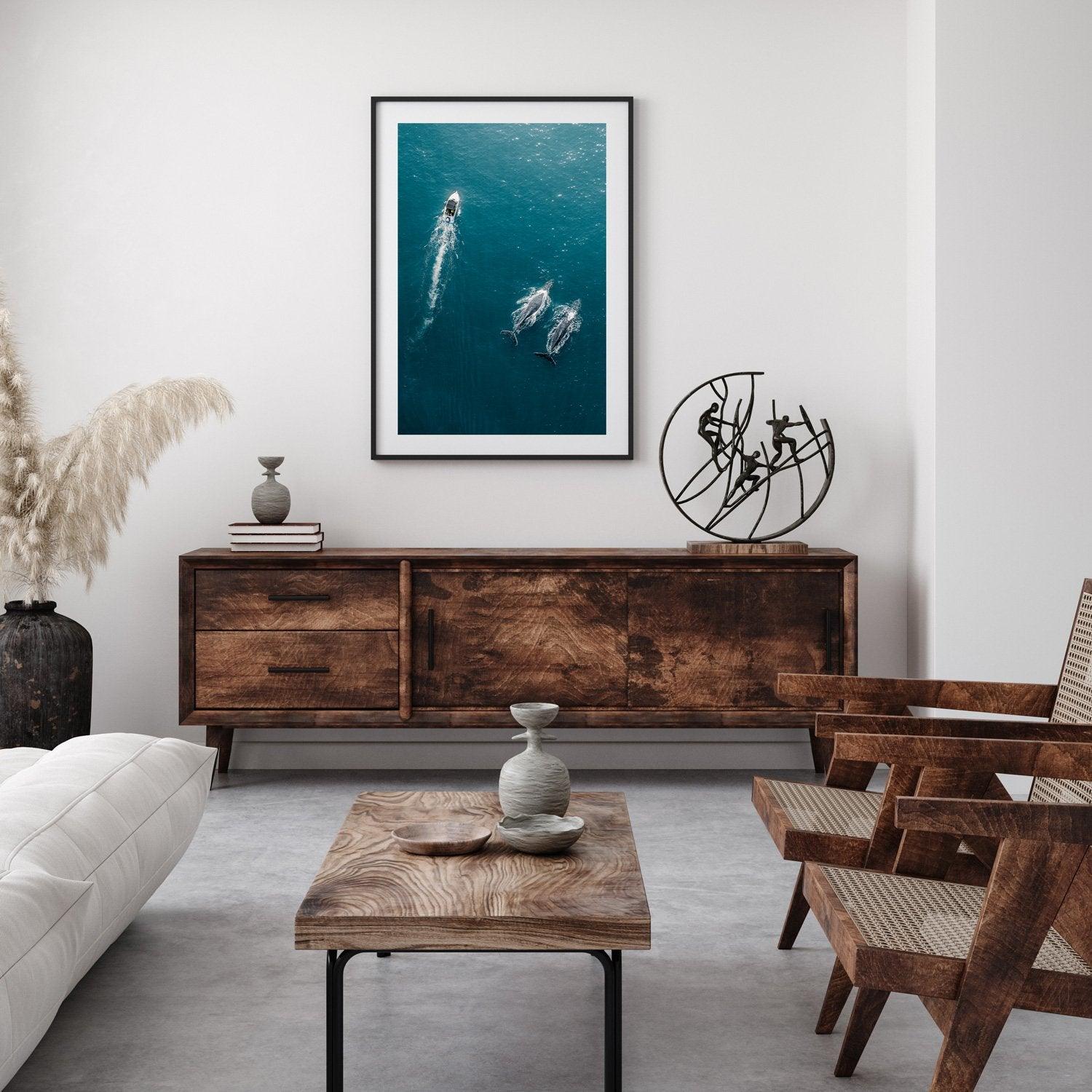Our frames are made from premium, solid and sustainably sourced plantation timber to ensure structural integrity at larger dimensions. Our framed prints feature a unique vacuum-mounted design, where each print is firmly adhered to a backboard. This technique ensures the longevity of our products by preventing potential curling due to temperature fluctuations, extreme heat, or everyday moisture exposure in your home. In addition, each framed artwork includes protective tape around the back edges to further enhance its stability.