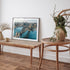 Our frames are made from premium, solid and sustainably sourced plantation timber to ensure structural integrity at larger dimensions. Our framed prints feature a unique vacuum-mounted design, where each print is firmly adhered to a backboard. This technique ensures the longevity of our products by preventing potential curling due to temperature fluctuations, extreme heat, or everyday moisture exposure in your home. In addition, each framed artwork includes protective tape around the back edges to further enhance its stability.