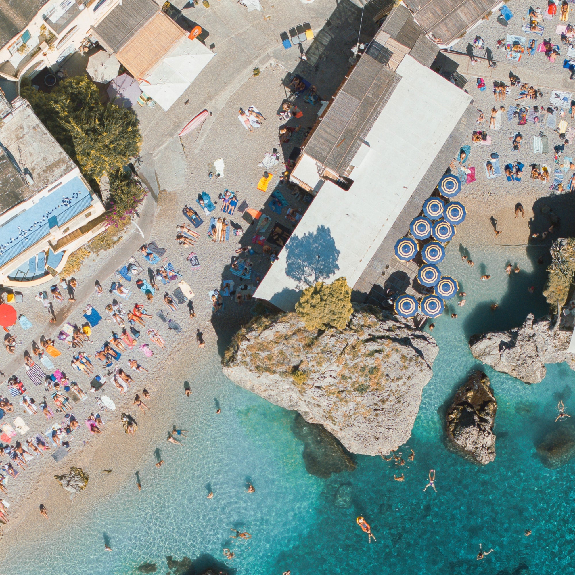 Soar above the turquoise waters of Marina Piccola in Capri with the Peak Summer Art Print. Captured from a perfect 90-degree bird’s-eye view, this vibrant aerial shot reveals sun-drenched umbrellas, swimmers, and the vivid blues of the Mediterranean. A captivating piece of Italian coastal wall art, available as a framed print or poster to bring the energy of Capri’s summer into your home.