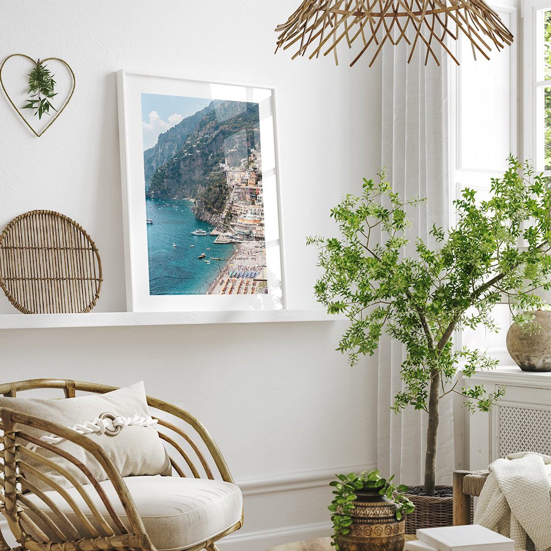 This Postcard From Positano Art Print is part of our Italy curated collection. Photographed in Positano, Italy. This art print is available as an unframed photo print or as a framed, ready-to-hang wall art.