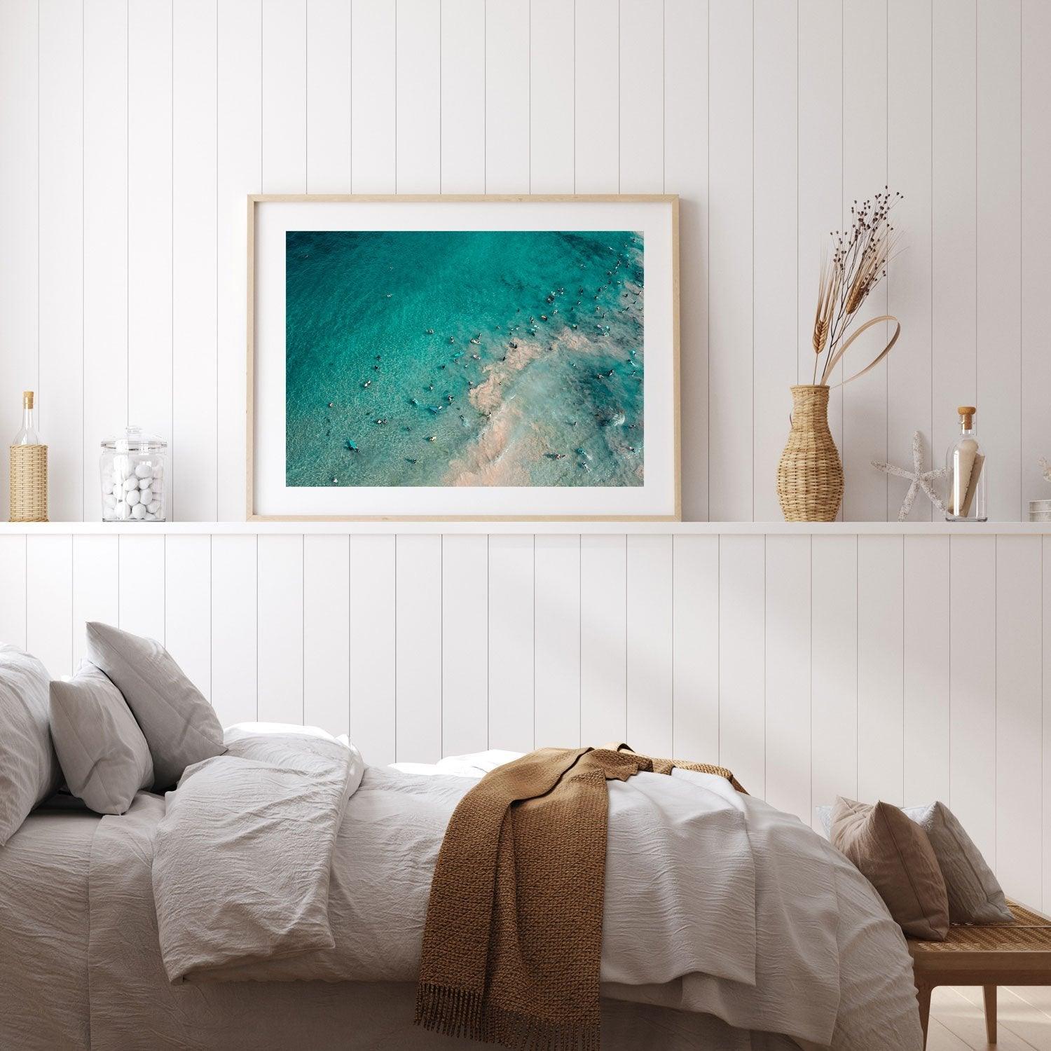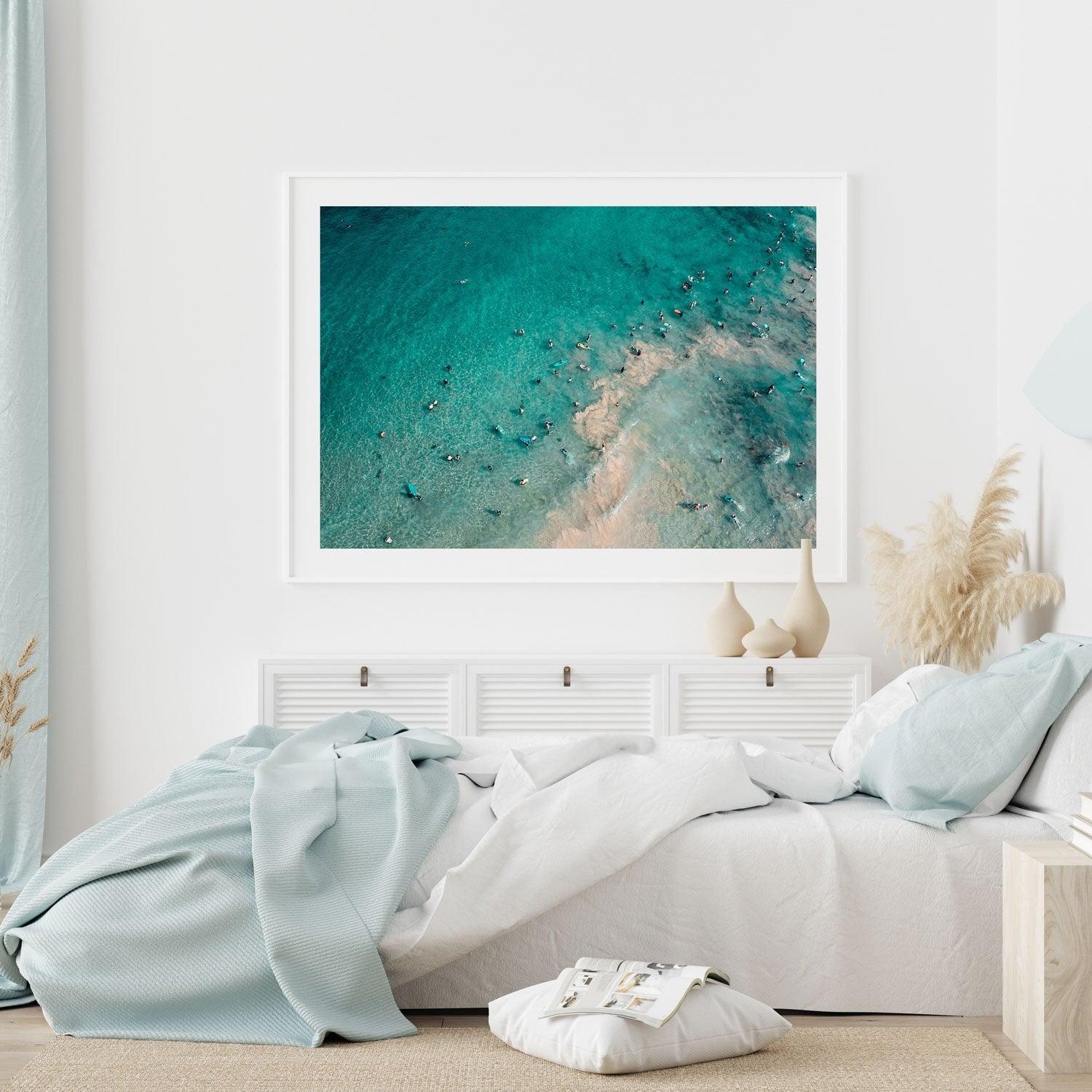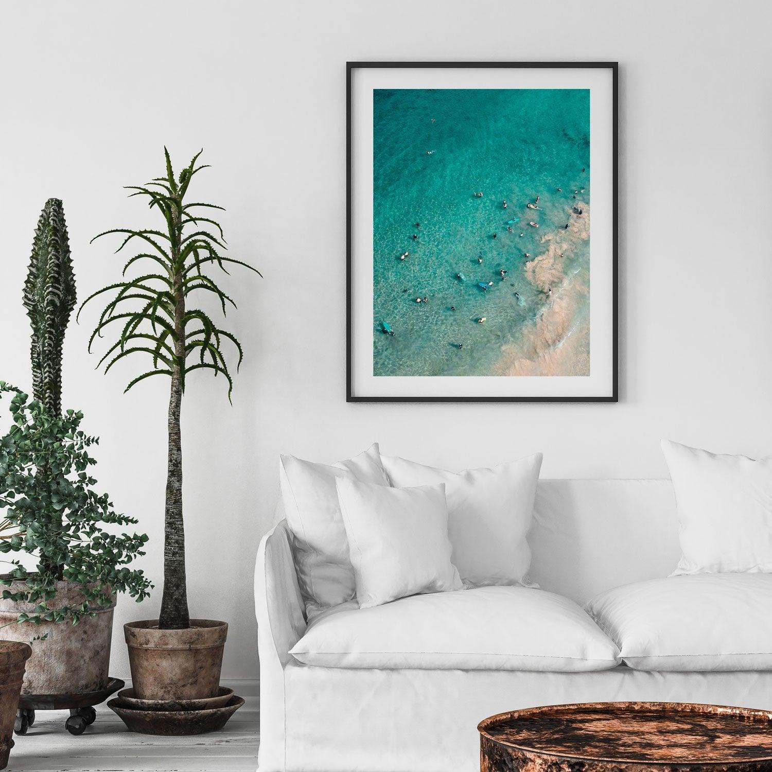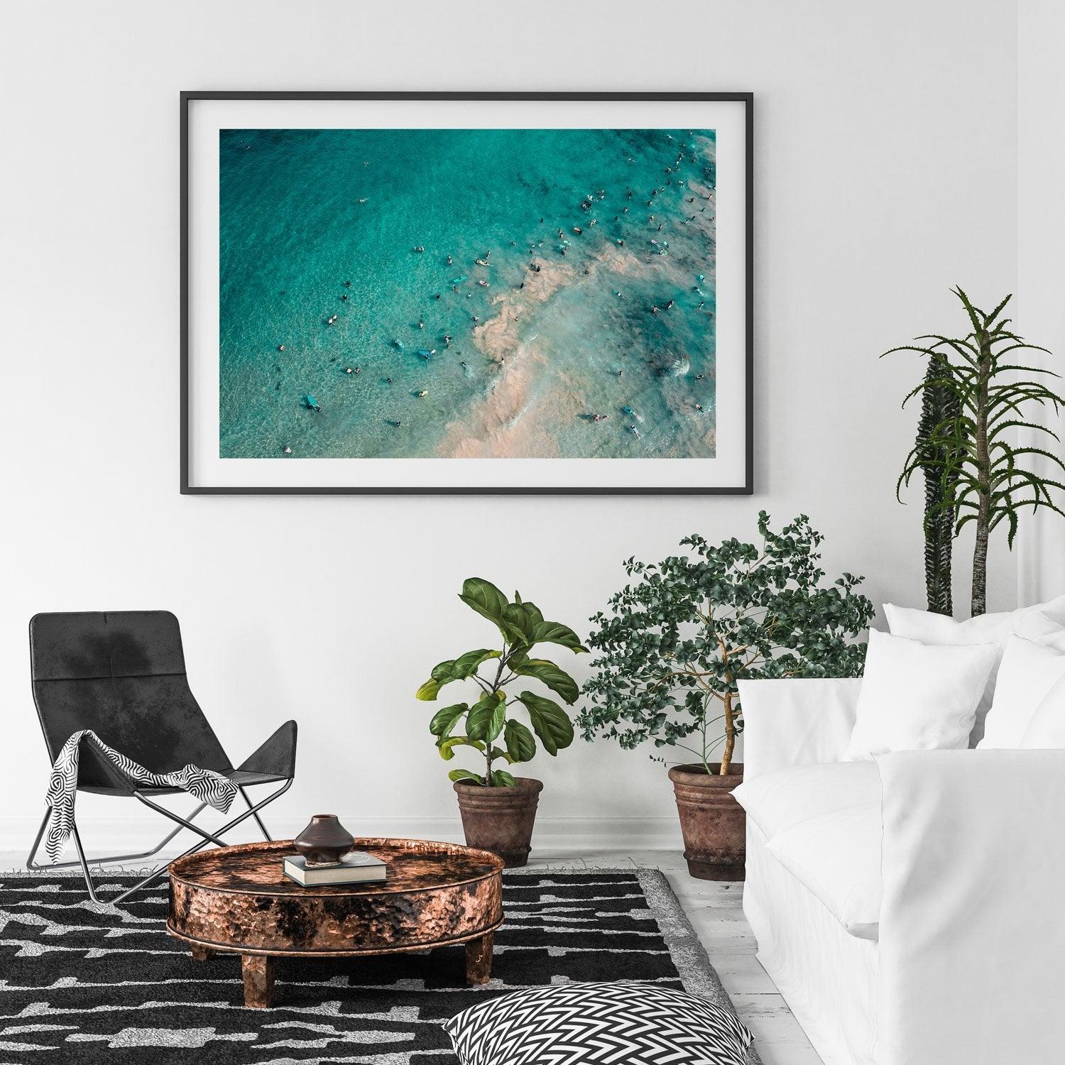 Our frames are made from premium, solid and sustainably sourced plantation timber to ensure structural integrity at larger dimensions. Our framed prints feature a unique vacuum-mounted design, where each print is firmly adhered to a backboard. This technique ensures the longevity of our products by preventing potential curling due to temperature fluctuations, extreme heat, or everyday moisture exposure in your home. In addition, each framed artwork includes protective tape around the back edges to further enhance its stability.