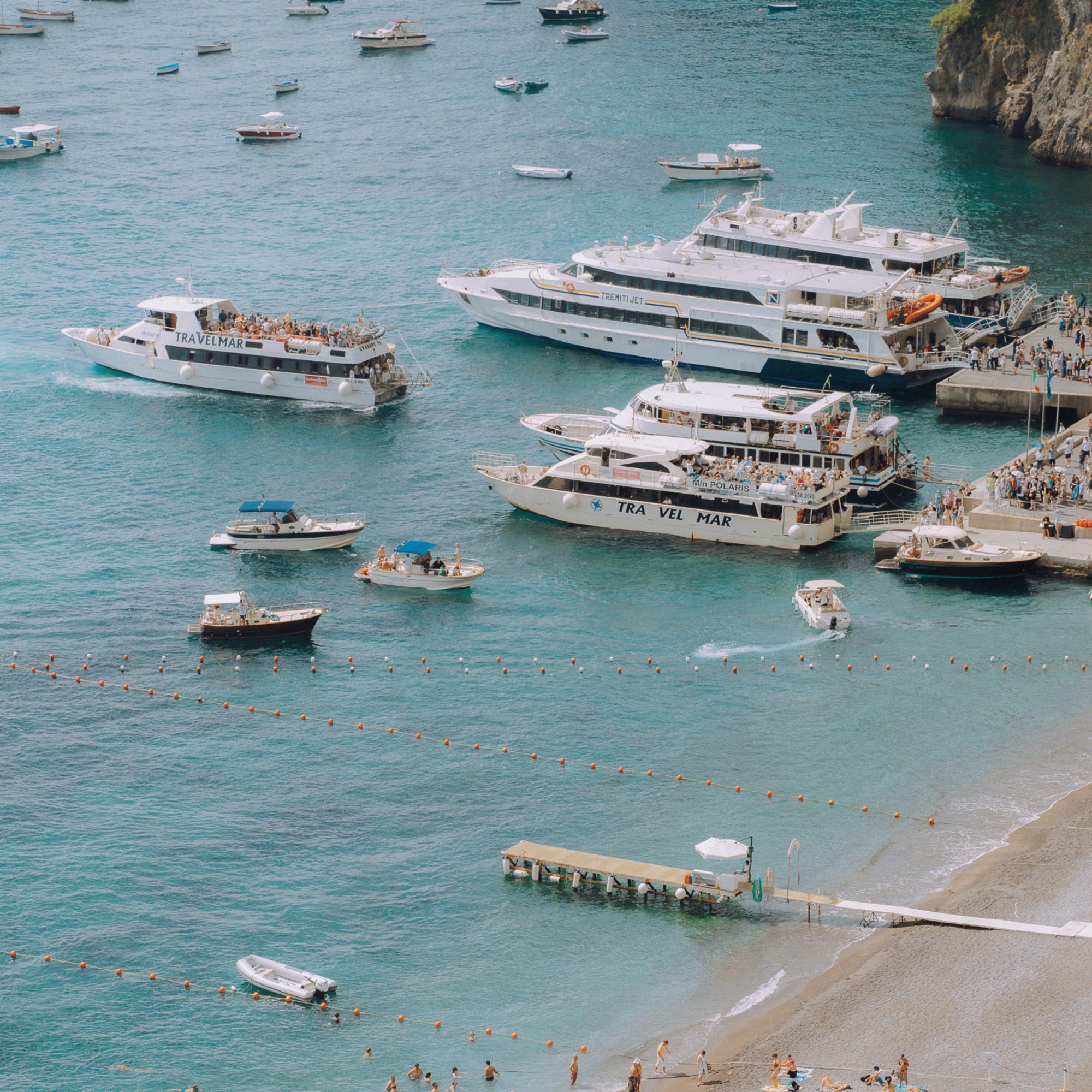 Immerse yourself in the lively rhythm of Positano Beach with the Riviera Space Art Print. This captivating scene features endless rows of colourful umbrellas lining the sand, with cruise boats in the background ready to whisk travellers away on their Amalfi adventures. A vibrant and dynamic piece of Italian coastal wall art, available as a framed print or poster to bring the energy of Positano’s summer to your home.