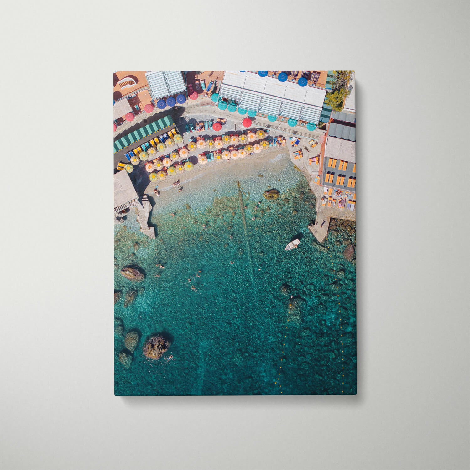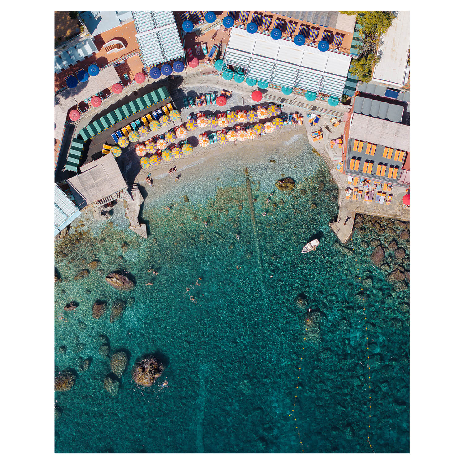 Escape to the crystal waters of Marina Piccola with the Summer Retreat Art Print. Captured from a breathtaking top-down view, this vibrant aerial photograph reveals sun-soaked umbrellas, swimmers, and the vivid turquoise tones of Capri’s coastline. A radiant piece of Italian coastal wall art — perfect as a framed print or poster to bring the joy of Mediterranean summer into your home.
