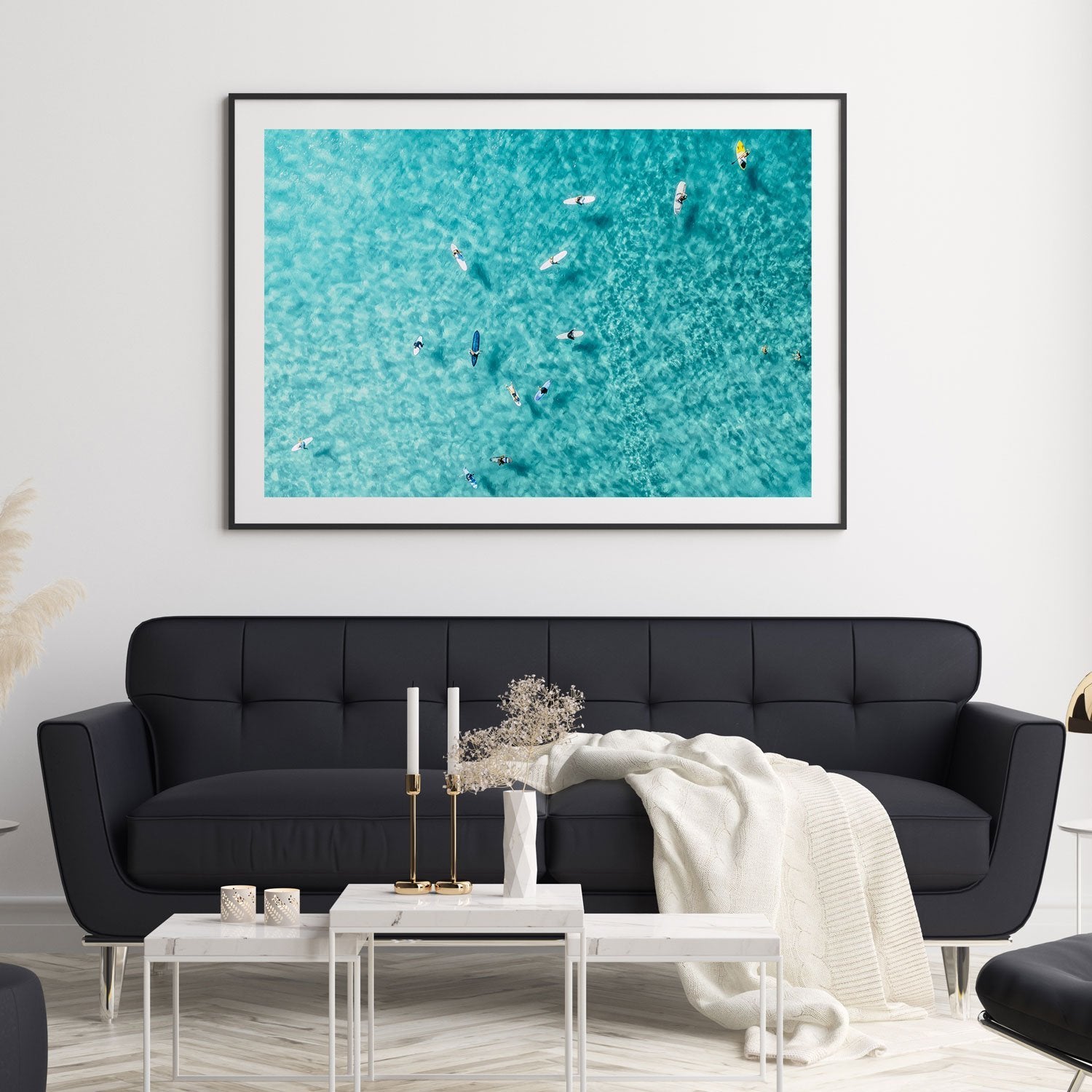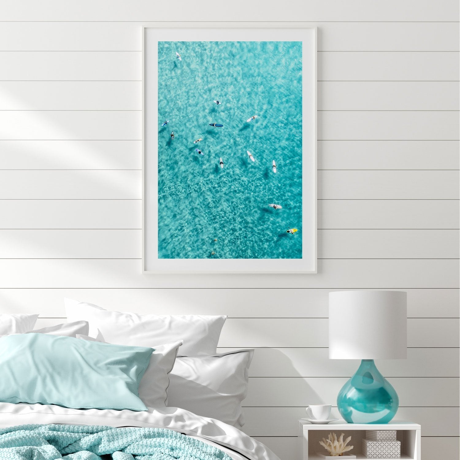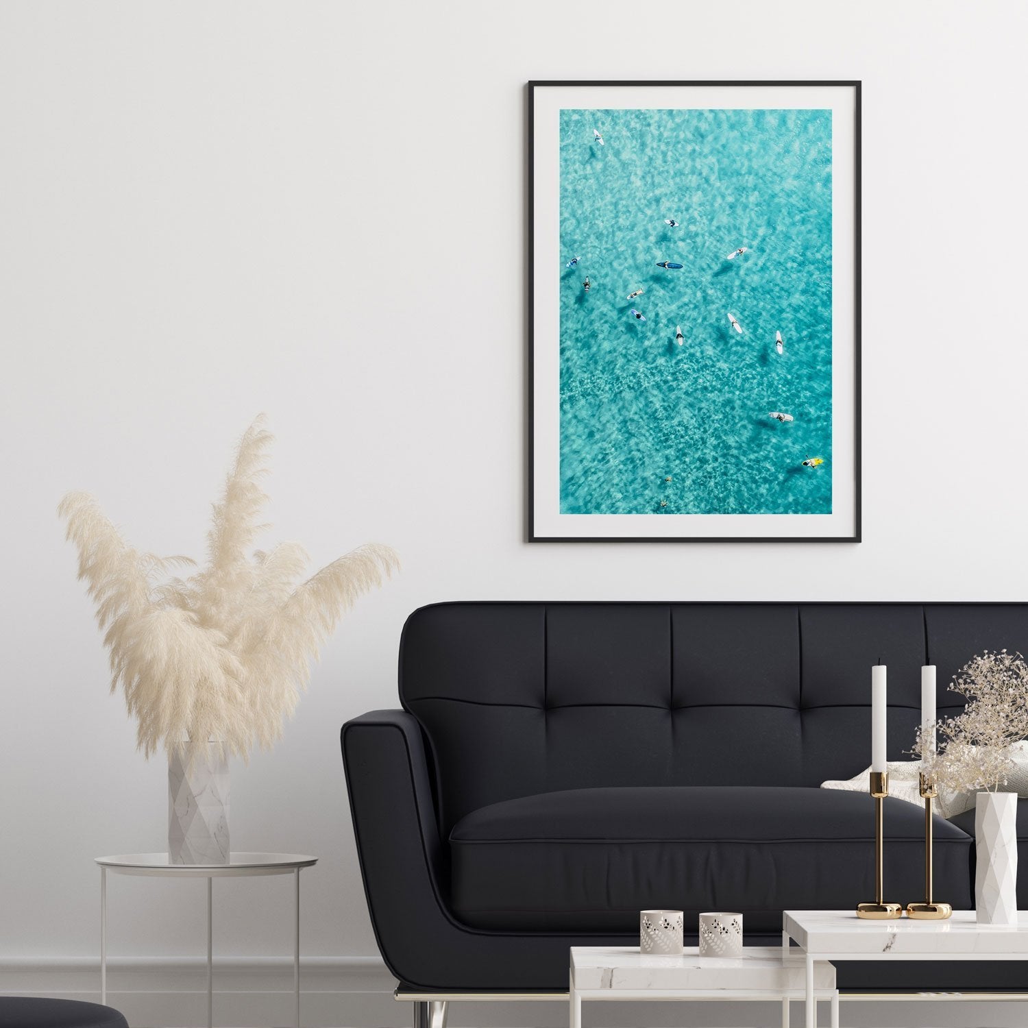 A refreshing capture of surfers at Bondi Beach from above. Depending on your preference, this print can be hung in portrait and/or landscape. Just take your pick!
