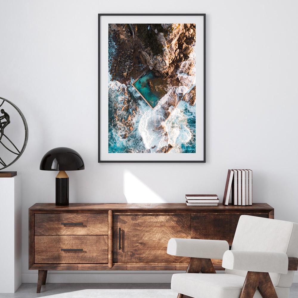Our frames are made from premium, solid and sustainably sourced plantation timber to ensure structural integrity at larger dimensions. Our framed prints feature a unique vacuum-mounted design, where each print is firmly adhered to a backboard. This technique ensures the longevity of our products by preventing potential curling due to temperature fluctuations, extreme heat, or everyday moisture exposure in your home. In addition, each framed artwork includes protective tape around the back edges to further enhance its stability.